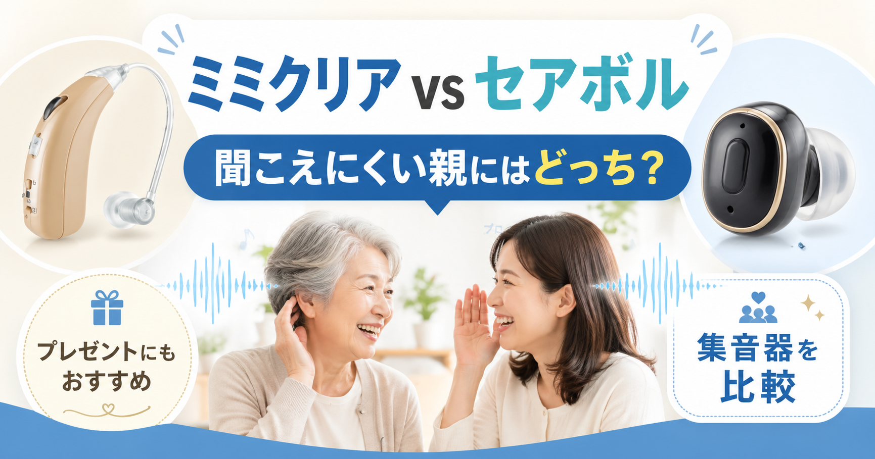 ミミクリアとセアボルは、どちらも日常の聞こえをサポートするための集音器です。